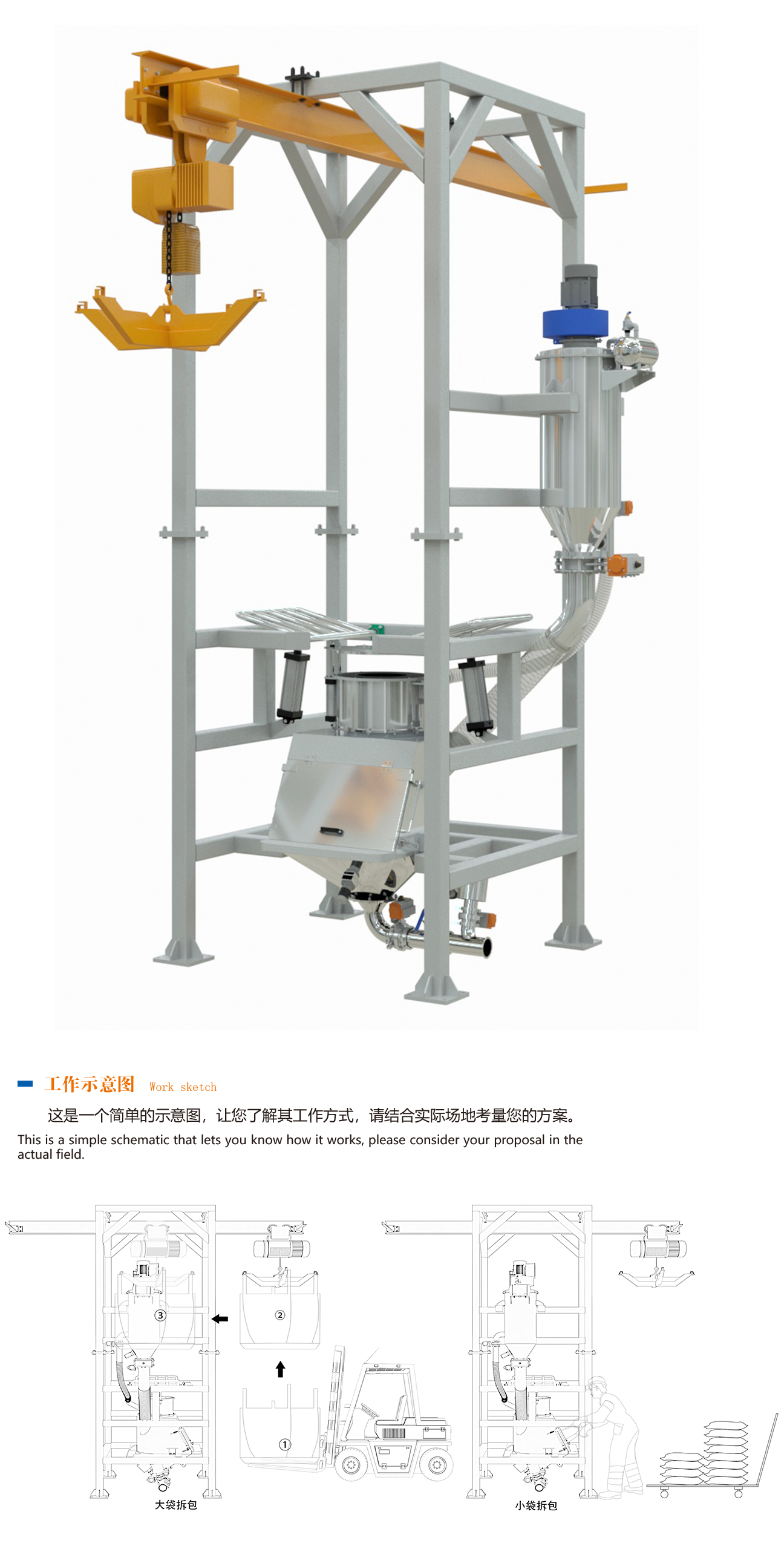 ■ 適用工況:流動性不好、易吸潮、結塊物料的大袋包裝物料,安全防爆;