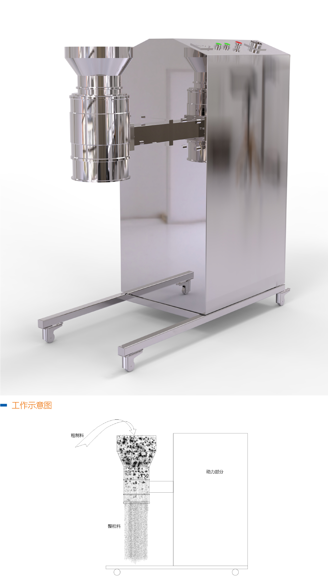 此設備用于改善物料的狀態,一是將大小不一的顆粒加工成大小相當的小顆粒,二是將較大濕度的散料加工成大小相當的小粒料,可以通過更換不同孔徑的篩網,調整整粒后物料的顆粒大小,在醫藥、食品、化工、鋰電等行業使用較多,主要用于高剪切制粒機濕法制粒后濕整粒、流化床干燥器干燥后的干整粒、干法制粒產品整粒、混合后物料粉碎到目標小尺寸。